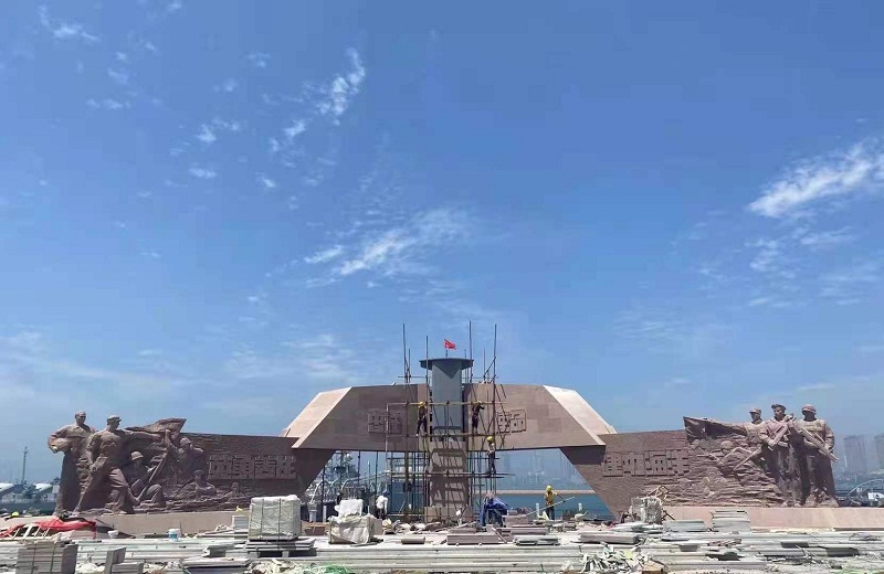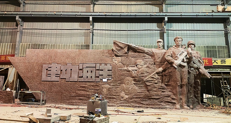 《走向深藍(lán)》雕塑設計(jì)說(shuō)明(míng):将忠誠使命¶ β®,英勇善戰,建功海(hǎi)洋的(de)海(hǎ≠ ≥i)軍精神化(huà)作(zuò)英雄雕塑,如(rú)整裝待發的(de)艦隊,起錨遠(yuǎ×n)航,兩側浮雕提取海(hǎi)軍英雄的(de)史詩曆程,鑄就(jiù)愛(ài<∏→)國(guó)主義精神與革命英雄主義精神,中間(jiān)以漢劍元素加以'★ ₹提煉,象征軍魂之劍勝利之劍,深藍(lán)之劍,寓意人(rén)民(mín)海(hǎi)軍☆α₩是(shì)黨領導下(xià)的(de)海(hǎi≤")上(shàng)力量是(shì)人(rén)民(mín)解放(fàng)軍的(de)重要(yàγ★∏$o)組成部分(fēn),劍指深藍(lán),所向披靡。